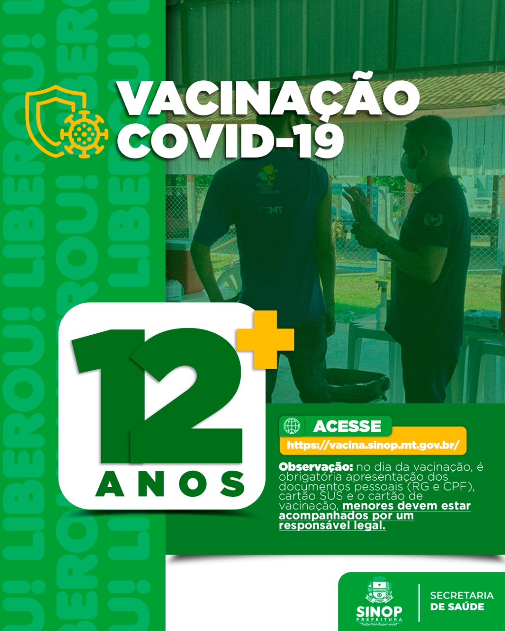 O agendamento pode ser feito pelo site da Prefeitura de Sinop, clicando no ícone “Vacina Covid” ou diretamente no link vacina.sinop.mt.gov.br. No dia escolhido para vacinação, os adolescentes deverão estar acompanhados por pais ou responsáveis.
