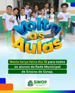 Mais de 20 mil alunos da Rede Municipal de Educação de Sinop retornam às aulas nesta terça-feira (18), após o recesso escolar da rede pública, que vigorou entre os dias 03 a 17 de julho. Os alunos das 41 unidades escolares retornam às salas para concluírem o ano letivo municipal, que vai até 22 de dezembro de 2023.
