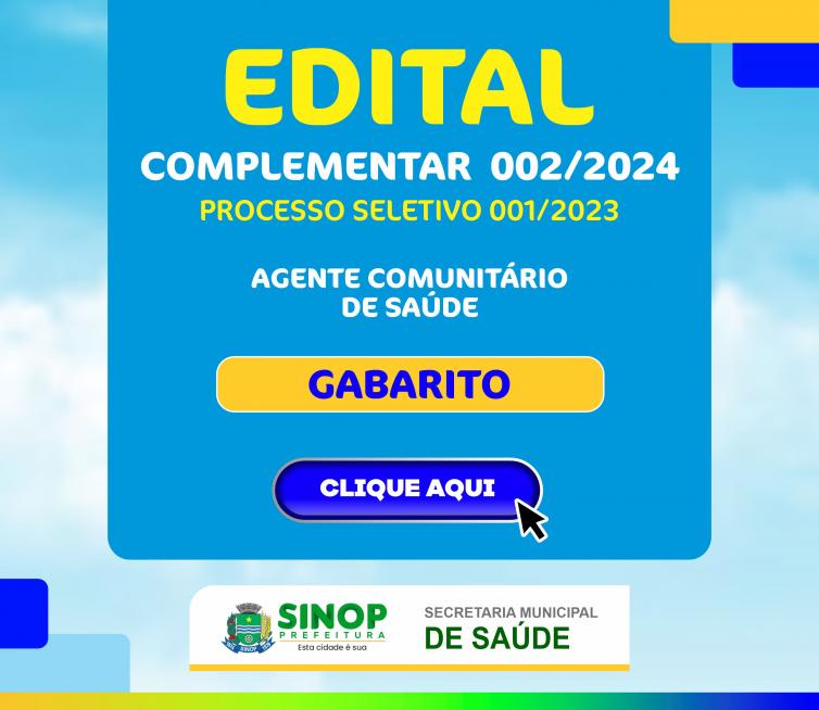 Na quarta-feira (17) será a publicação oficial do gabarito. Já o prazo para recursos da prova e gabarito vai do dia 18 a 22 de fevereiro, e no dia 26 a publicação final do gabarito após recursos. A publicação da relação dos candidatos aprovados e classificados será no dia 07 de fevereiro. Os candidatos podem conferir o gabarito da prova através do endereço eletrônico: https://www.sinop.mt.gov.br/fotos_downloads/513.pdf .