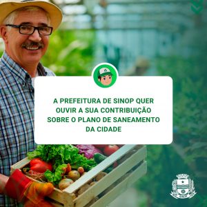 A Secretaria Municipal de Meio Ambiente e Desenvolvimento Sustentável fará nesta quinta-feira (18), às 14h, uma reunião participativa no Centro de Eventos Dante de Oliveira para apresentar à população de Sinop, o diagnóstico preliminar do Plano de Saneamento Básico da cidade.