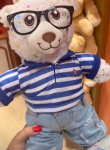 Ao entrar na oficina, o convidado segue sete passos, até sair de lá com sua pelúcia personalizada. O primeiro é escolher um modelo entre vários tipos disponíveis, como ursos de diversas cores, cachorros, dinossauros e unicórnios.