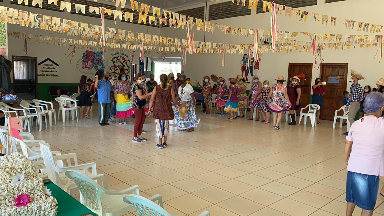 A gente procurou trazer para eles coisas que venham à memória, aquelas coisas da infância, dos avós”. A coordenadora ressalta que inclusive as comidas foram pensadas e preparadas para a celebração. A Secretaria trouxe para nós o pé de moleque já confeccionado, a paçoquinha, fizemos aqui a canjica, o arroz doce, o bolo de milho, tudo típico para relembrar o tempo do sítio.