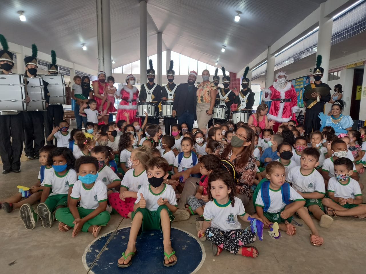 As crianças amaram receber a visita do Papai Noel. Eles ficaram encantados! Percebemos o brilho no olhar e o sorriso no rosto de cada criança. Quando eles ouviram o toque dos instrumentos da banda, eles ficaram extremamente felizes. Mas o que eles mais amaram foi poder tocar os instrumentos com o pessoal, percebemos lágrimas escorrendo no rostinho deles. Quero agradecer e parabenizar a Diretoria de Cultura, por proporcionar esses momentos tão especiais e cheios de significados aos alunos da rede municipal