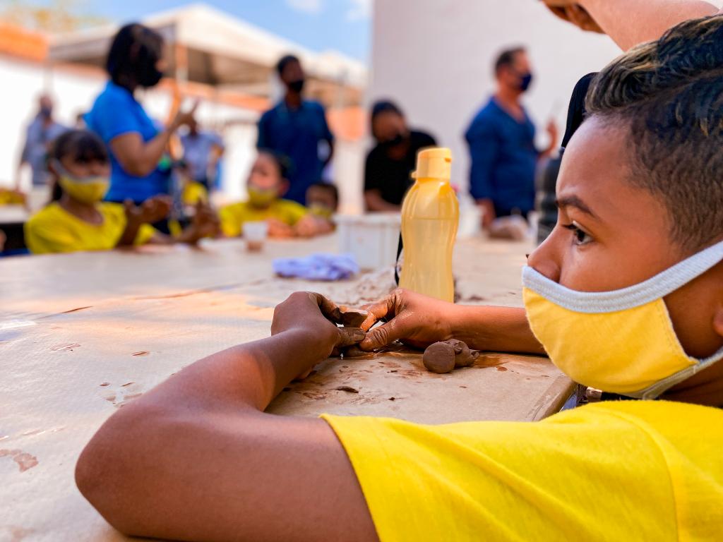 A primeira ação do acordo de cooperação é a realização da oficina “Ritxõkò/Ritxòò: As Bonecas de Barro do Povo Indígena Iny\Karajá”. São 8 turmas, com estudantes de Cuiabá e Várzea Grande. A primeira, dos alunos da Escola Municipal Aristides Pompeo de Campos, do bairro Cidade de Deus, de Várzea Grande, realizou as atividades na tarde desta terça-feira (31.08), no Museu de História Natural de Mato Grosso.