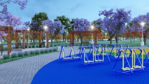 No trecho da Avenida das Sibipirunas já foram concluídas duas quadras de areia e uma poliesportiva, bem como parte dos banheiros (em breve, será executado o revestimento nas paredes e também feita a pintura). Nesta região, também serão instalados brinquedos. Já no trecho da rua dos Abacateiros, está sendo executada a terraplanagem.