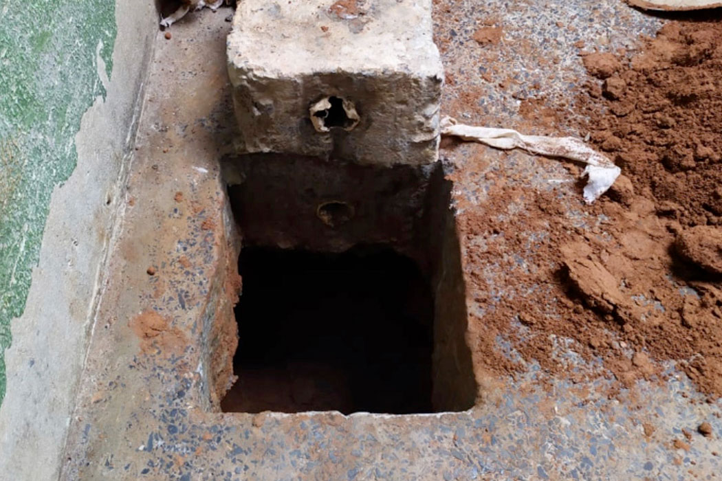 Ainda segundo os militares, o buraco estava sendo camuflado com uma massa artesanal, produzida com sabão de pedra. Alguns cadeados das celas também foram danificados, para auxiliar durante a fuga. Os objetos já foram substituídos.