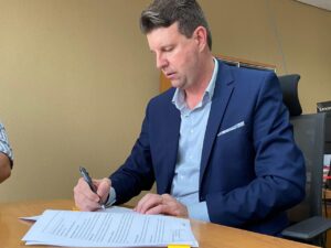 Na capital do Estado, o prefeito Ari Lafin assinou, nesta sexta-feira (28 de abril), o convênio que garante a vinda para Sorriso de quase 500 equipamentos de monitoramento eletrônico por meio do programa estadual Vigia Mais MT.