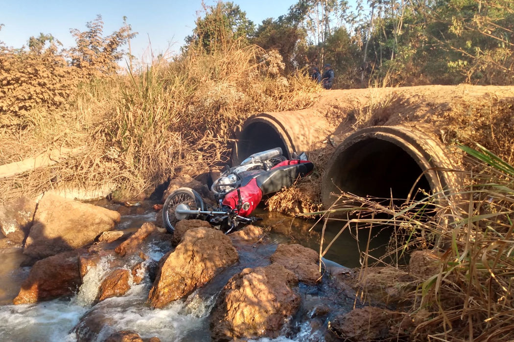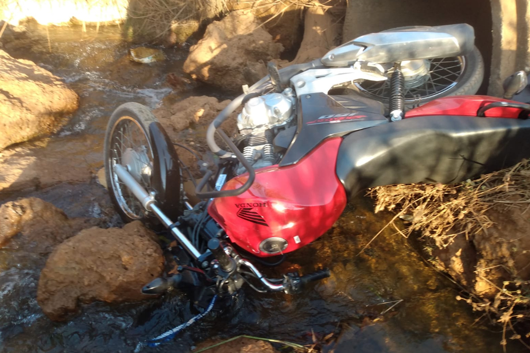 Uma moto Honda CG Start vermelha foi localizada na tarde deste sábado (21) abandonada em um córrego nas proximidades da avenida André Maggi, no bairro Jardim Caribe. O dono da moto, um jovem de 20 anos, segue desaparecido. Tanto a chave do veículo quanto o capacete estavam no local.