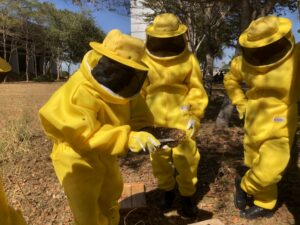 Por fim, participante da capacitação, o soldado Bruno Luiz relata sua experiência sobre a manhã de aprendizado. “Foi um treinamento bem válido, porque é uma atividade que desempenhamos bastante em Sinop e na região. Nós aprendemos a realizar o manejo das abelhas de forma correta e principalmente a preservar esses animais que são extremamente necessários para preservação do meio ambiente e também para que possamos produzir alimentos de qualidade na nossa região, no caso o mel, própolis e todos os outros alimentos que essa cadeia produtiva pode nos oferecer”, completou.