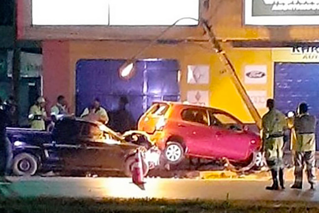 Ainda segundo o documento policial, os carros seguiam pela rua João Pedro Moreira de Carvalho, quando um dos veículos, uma picape GM Montana preta, acabou atingindo a traseira do outro carro, um Toyota Etios vermelha. Com o impacto, o veículo acabou perdendo o controle e batendo em um poste da rede elétrica, que se partiu ao meio.