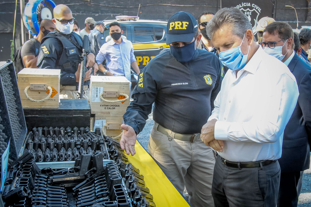 O governador Mauro Mendes agradeceu as parcerias tanto com a PRF quanto com o MPE e lembrou que o Estado já tinha iniciado um processo de aquisição de novos armamentos e argumentou que as doações vieram em um bom momento.