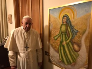 Recentemente o quadro intitulado “Maria Às Pressas”, foi recebido pelo papa Francisco, três anos após a criação da obra. Mari deixou a arte para ser entregue quando realizou a exposição individual “Amazônia” na Sala Stampa do Vaticano em Roma durante o Sínodo da Amazônia, em 2019.