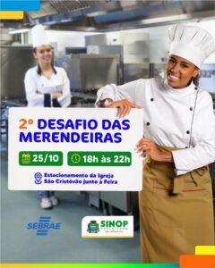 Cinco merendeiras da rede municipal de ensino de Sinop mostrarão seus talentos culinários no 2º Desafio das Merendeiras, nesta quinta-feira (25), a partir das 18h, no estacionamento da igreja São Cristóvão. Promovido pela Secretaria de Educação, Esporte e Cultura, o evento é uma parceria com o Serviço de Apoio às Micro e Pequenas Empresas em Mato Grosso (SEBRAE) e o projeto Cidade Empreendedora e Sustentável.