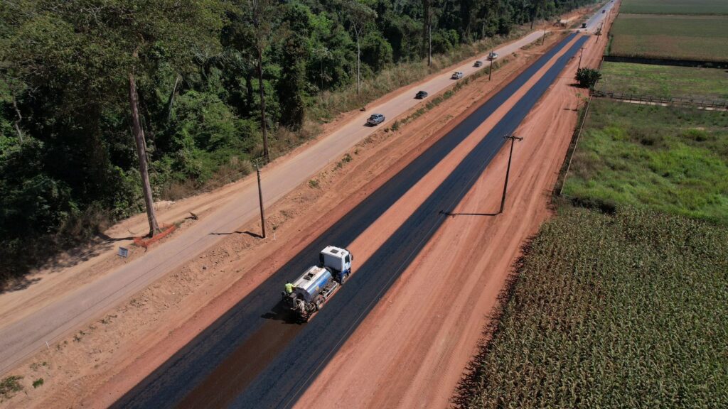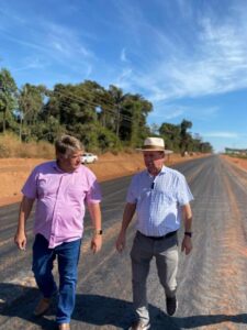 “Aqui tem cerca de 4 km de asfalto para concretizar. Já tem 1,8 mil, quase 2 mil metros, imprimados e vai imprimar o restante nos próximos dias. Esse asfalto é uma obra que está andando bem, vai ser de ótima qualidade e vai dar tranquilidade aos nossos moradores”, destacou o prefeito durante a visita.