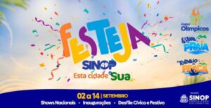 As programações em comemoração aos 49 anos de Sinop iniciam neste fim de semana (02), e para conferir as datas e locais dos shows, festival de pesca e de praia, jogos olímpicos e demais atividades que serão realizadas durante o período, a população pode acessar o site oficial do Festeja Sinop, diretamente no link https://festeja.sinop.mt.gov.br/ ou pelo banner disponibilizado no site oficial da Prefeitura.