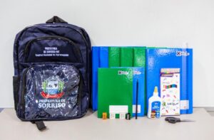 O kit conta com mochila, camiseta e materiais escolares básicos e são diferenciados de acordo com cada etapa escolar (Pré I e Pré II, 1º ao 5º e 6º ao 9º ano) aos estudantes cuja família é beneficiária do Auxílio Brasil. Porém, para que os estudantes recebam o material é necessário que as famílias estejam com o Cadastro Único (CadÚnico) atualizado.