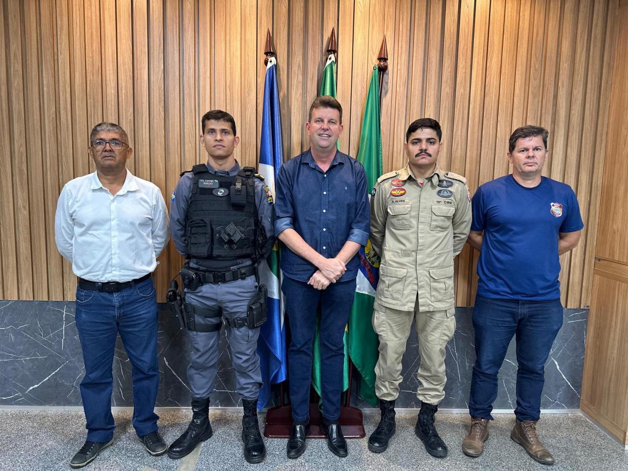O anúncio foi feito pelo prefeito Ari Lafin e pelo secretário de Segurança Pública, Trânsito e Defesa Civil (Semsep), José Carlos Moura, e pelo assessor de segurança da pasta, coronel PM da reserva remunerada, Flávio Ramalho dos Santos, nesta quinta-feira (11), durante reunião com o comandante da 10ª Companhia Independente de Bombeiros Militar (CIBM), capitão Daniel Alves Moura e Silva, e o comandante adjunto do 12º Batalhão da Polícia Militar, major Inácio Moraes.