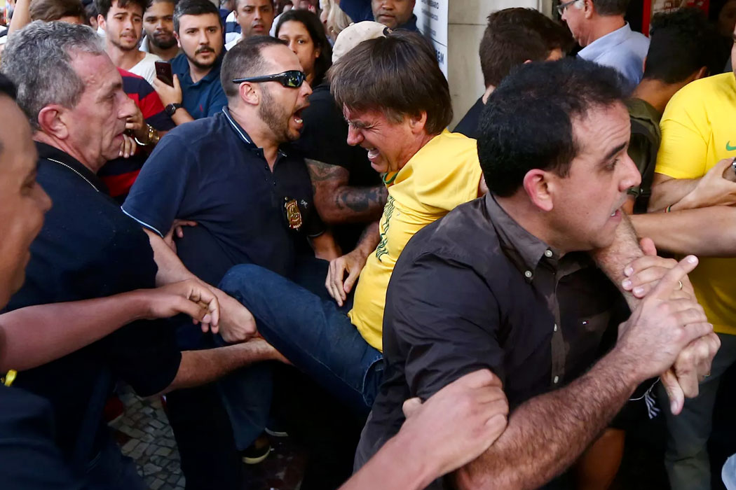 No momento da confusão, Bolsonaro estava sendo carregado nos ombros por um apoiador de sua campanha, fazendo corpo a corpo com eleitores, na região do Parque Halfald. Com ferimento superficial, ele foi levado para um hospital da cidade.