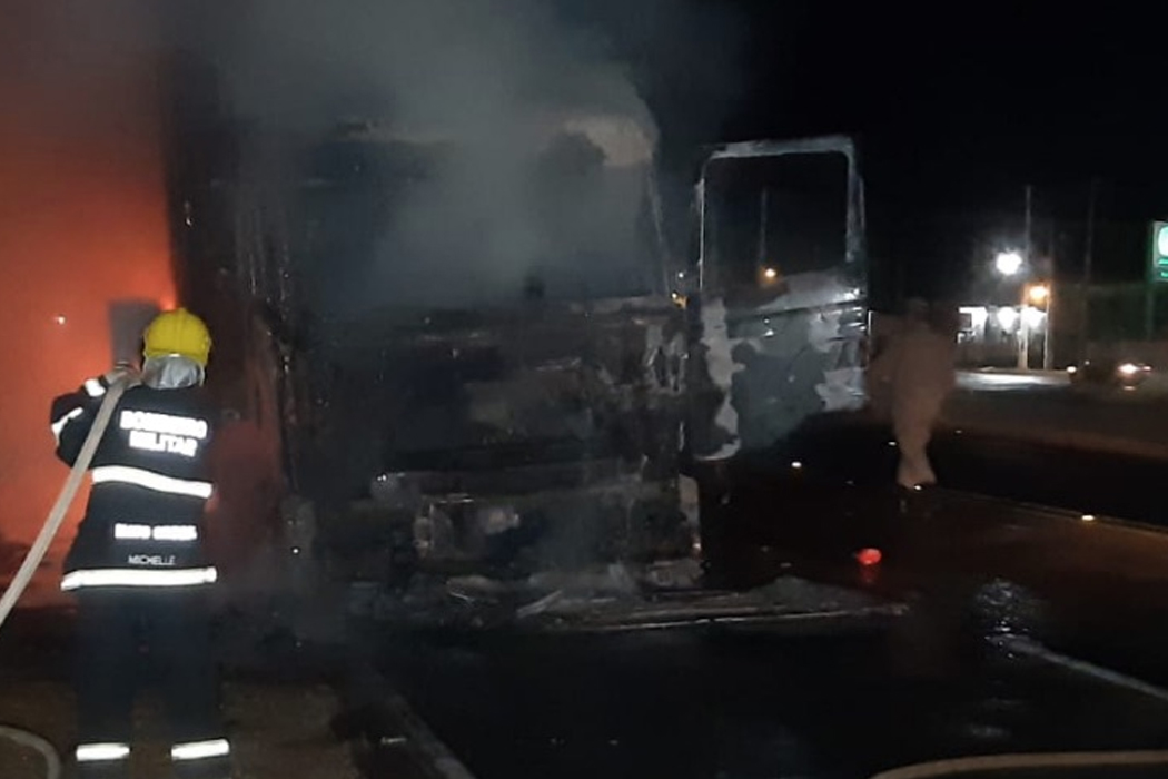 Soldados do Corpo de Bombeiros foram acionados para atender uma ocorrência de incêndio na noite da última quinta-feira (19), na BR-163, em Sinop. Consta no Boletim de Ocorrências que um caminhão pegou fogo e ficou completamente destruído. O motorista conseguiu sair do veículo e não se feriu.