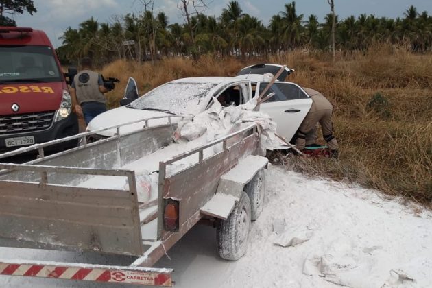 Ainda segundo o documento policial, o homem que estava no banco do passageiro teve uma fratura em uma das pernas, uma vez que a carretinha perfurou a lataria do veículo no local onde ele estava. O motorista estava com suspeita de lesão cervical também precisou de atendimentos.