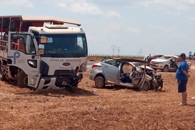 Um grave acidente envolvendo seis veículos foi registrado na manhã da última segunda-feira (06), na BR-163, a aproximadamente 40km do centro de Sinop. Uma mulher, que dirigia um dos carros, acabou morrendo durante a colisão. Dois adolescentes, de 11 e 16 anos, que também estavam no carro, foram encaminhados para o Hospital Regional de Sinop em estado grave.