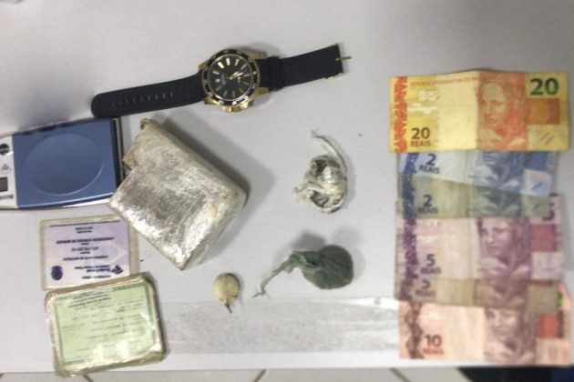 Ainda segundo o documento policial, os agentes ainda encontraram tablete de maconha, duas porções fracionada de maconha, uma porção de pasta base de cocaína, R$ 44 em dinheiro trocado e uma balança de precisão. Os dois suspeitos já possuem passagens na polícia pelo crime tráfico de drogas.