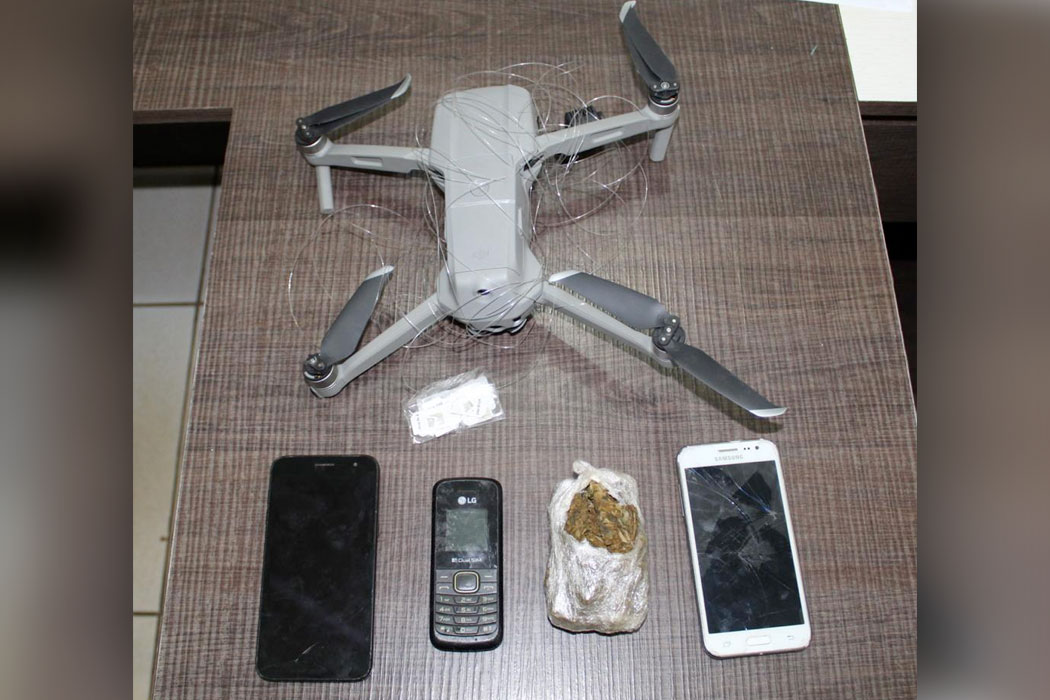Os agentes, ao interceptar o aparelho não tripulável, encontraram acoplados dois aparelhos celulares, um carregador e um cabo USB.
