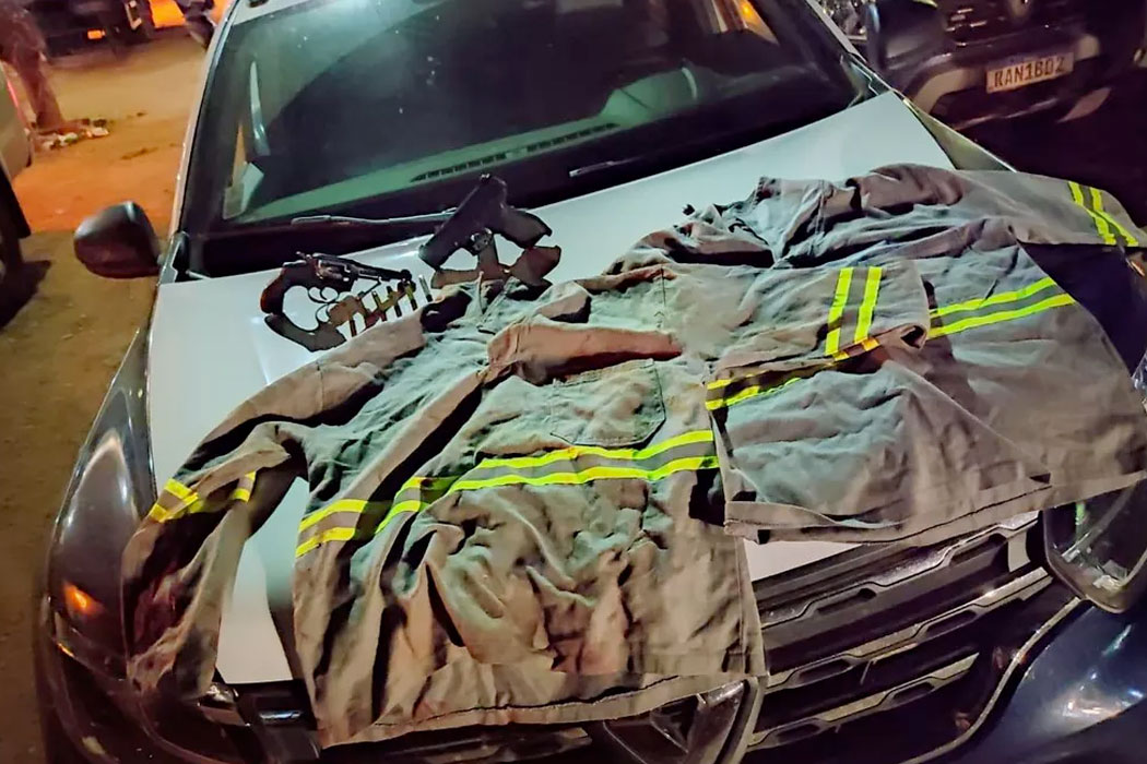 Os policiais encontraram um revólver e uma arma de brinquedo com os suspeitos. O fato deve ser investigado pela Polícia Civil do município.