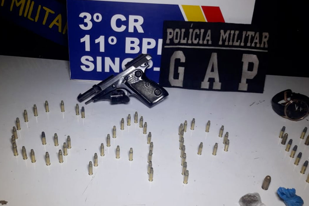 Soldados do G.A.P. (Grupo de Apoio) da Polícia Militar de Sinop prenderam um homem de 26 anos na noite da última terça-feira (26) no bairro Jardim Boa Esperança, pelos crimes de posse ilegal de arma de fogo e uso de drogas. Consta no Boletim de Ocorrências que o homem estava no cruzamento da rua Paulo Pan com a rua 04.