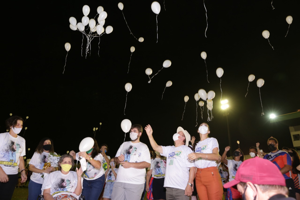 Uma bonita homenagem às 437 vítimas do Coronavírus marcou a solenidade de abertura do aniversário de Sinop e da 29ª edição dos Jogos Olímpicos. Balões brancos foram soltos pelos participantes da competição. Para representar as famílias e amigos que perderam pessoas queridas em decorrência à doença, a família de Luiz Carlos Simon, o Chucky, foi a escolhida.