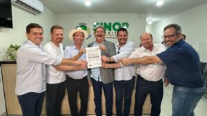 Mais um passo importante para o desenvolvimento foi dado, na tarde desta quarta-feira (23), em Sinop. O prefeito Roberto Dorner entregou nas mãos do empresário Carlos Júlio Haacke, da Haacke Empreendimentos, o alvará de construção do SKY 360, prédio comercial que será edificado na rotatória do cruzamento das avenidas Figueiras com Magda Pissinatti, no residencial Florença. “Sinop já tem um ganho muito grande com essa empresa se estabelecendo e construindo em nossa cidade. Com esse prédio, então, vai chamar a atenção do mundo, onde os grandes investidores, as pessoas que trabalham no agronegócio, vão ter um lugar especial para trabalhar. Então eu fico muito feliz”, destacou Dorner.